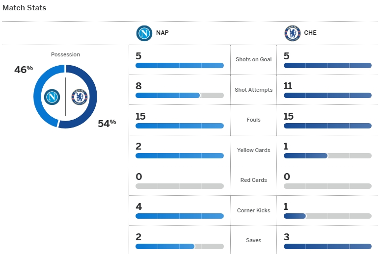 เชลซี มี 16 คะแนน จบอันดับ 6 ส่วน นาโปลี มี 8 แต้ม จบที่ 30