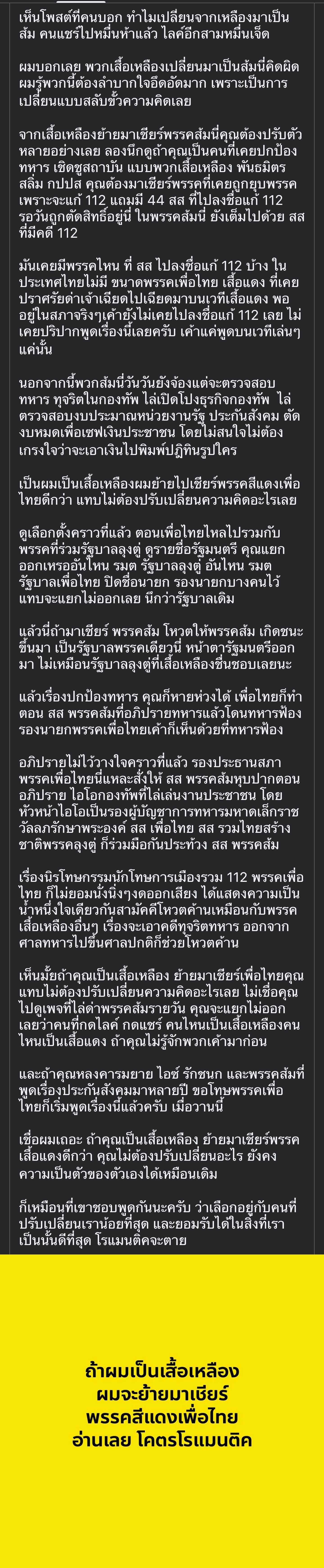 [RE: ถ้าผมเป็นเสื้อเหลือง ผมจะย้ายมาเชียร์พรรคสีแดงเพื่อไทย]