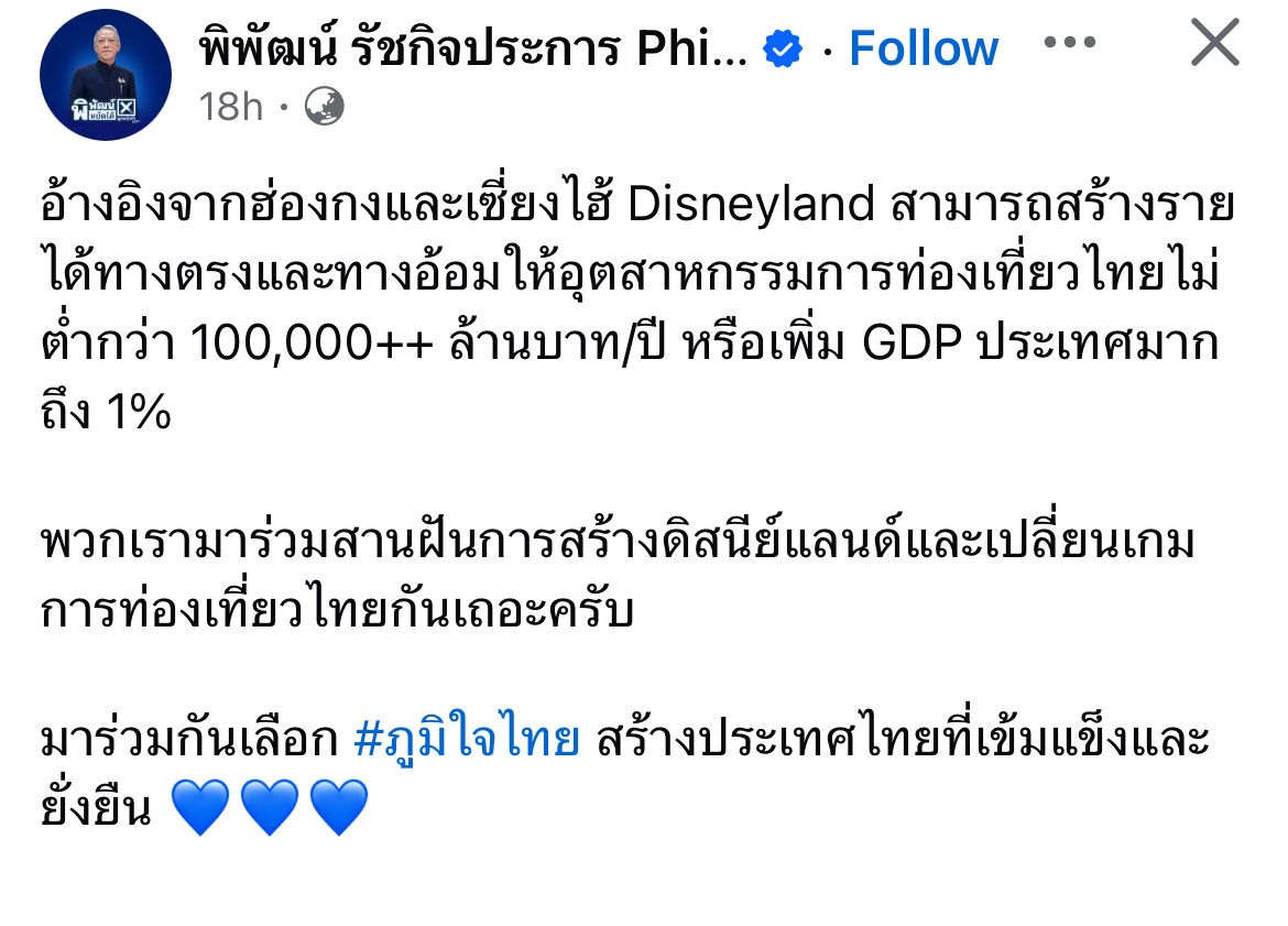 มีในนโยบายยื่น กกต มั้ย สร้าง disneyland