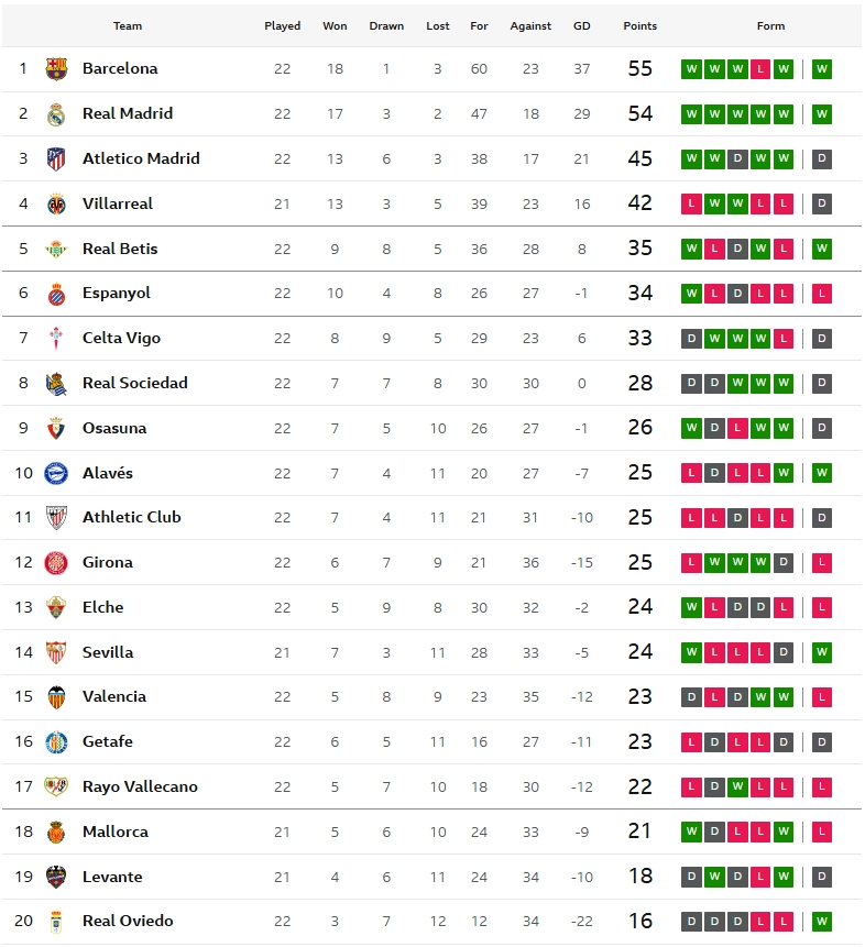 เบติสเฉือนค้างคาว, บิลเบาเจ๊าโซเซียดาด...สรุปผล ลาลีกา