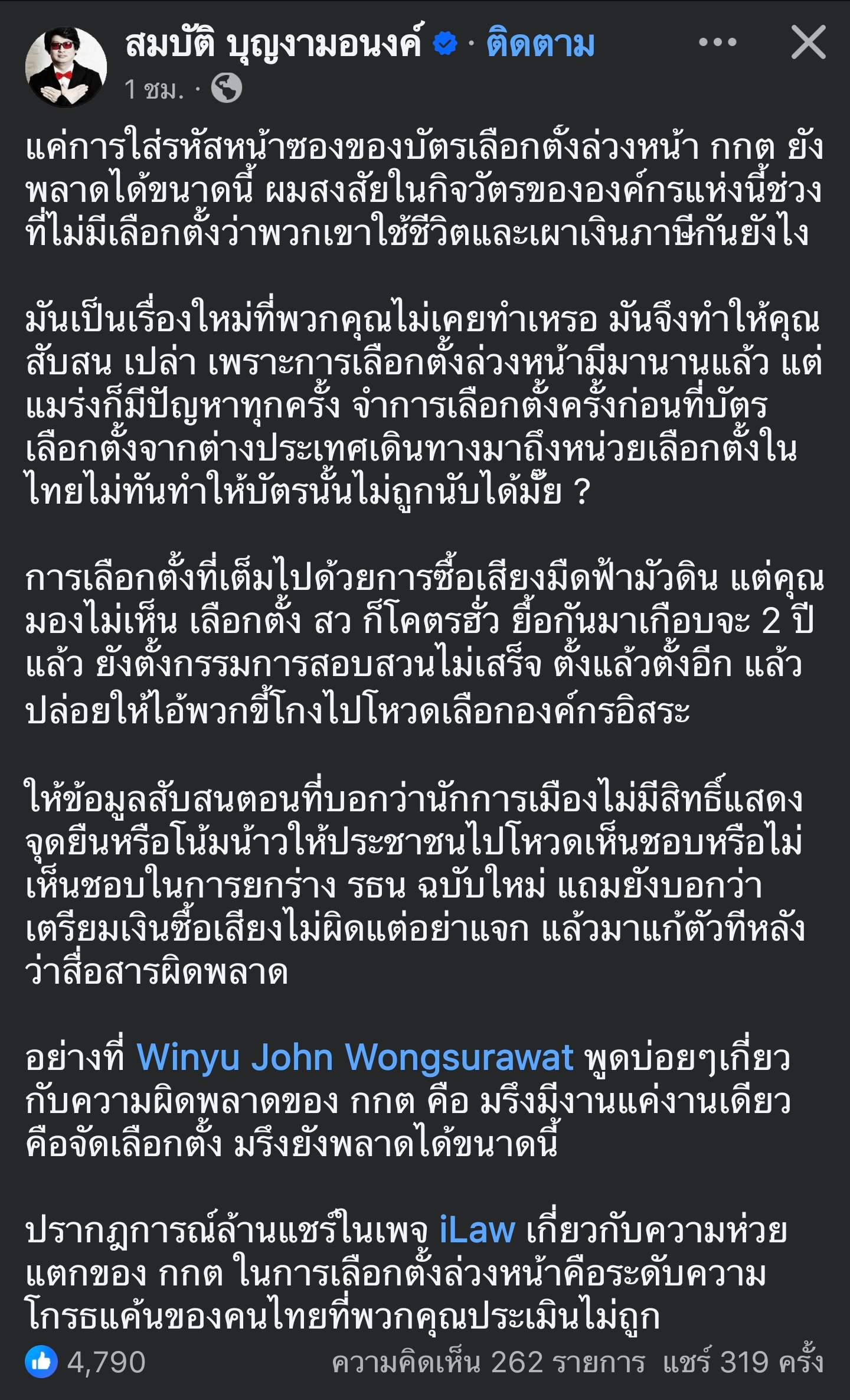 เอาจริงเรื่องนี้โทษ กกต ได้ 100 %