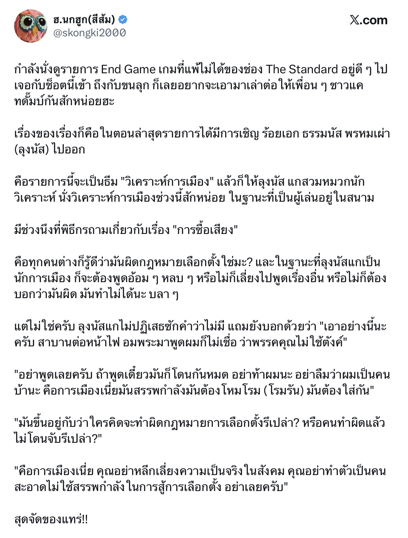 [RE: ธรรมนัสชี้การซื้อเสียงคือความเป็นจริง อย่าทำตัวเป็นคนสะอาด]