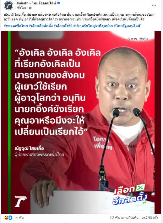 มีมารยาท แต่ไม่มีความสามารถสำหรับตำแหน่งนายกครับ ไอ้เต้น ไปมีมารยาทไกล ๆ เลย