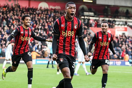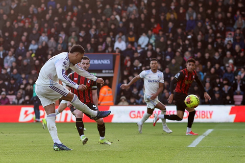 รายาน รับบอลที่ริมเส้นฝั่งขวาลากจี้ใส่ ดีญ แล้วโยกหลบไปยิงในเขตโทษยัดมุมแคบ บอร์นมัธ ตีเสมอ 1-1