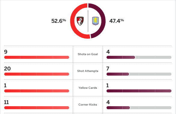 บอร์นมัธ ทำเกมมาอีก ครูปี ยิงหน้าเขตโทษติดเซฟ มาร์ติเนซ ไปเข้าทาง เอวานิลซอน พุ่งโหม่งซ้ำเข้ามือโกล์ วิลล่า