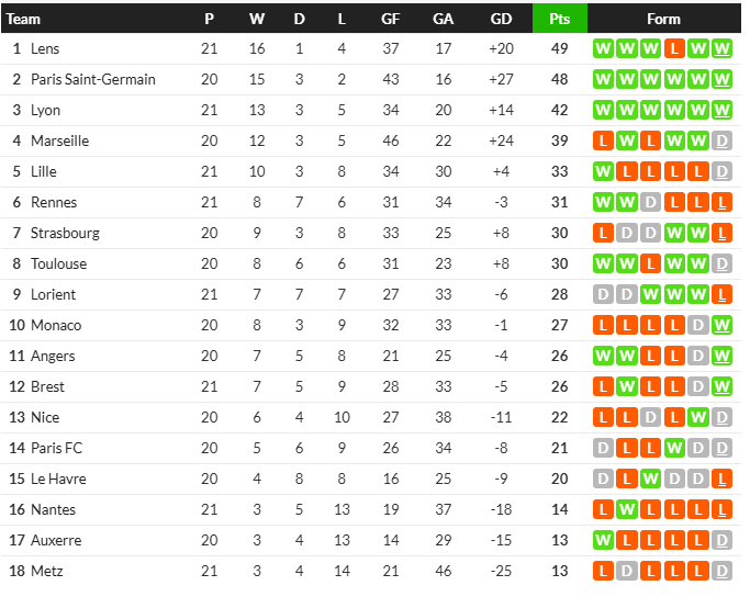 ล็องส์ชนะ 3-1 บี้จ่าฝูง, ลียงเฉือน 1-0...สรุปผลลีกเอิง