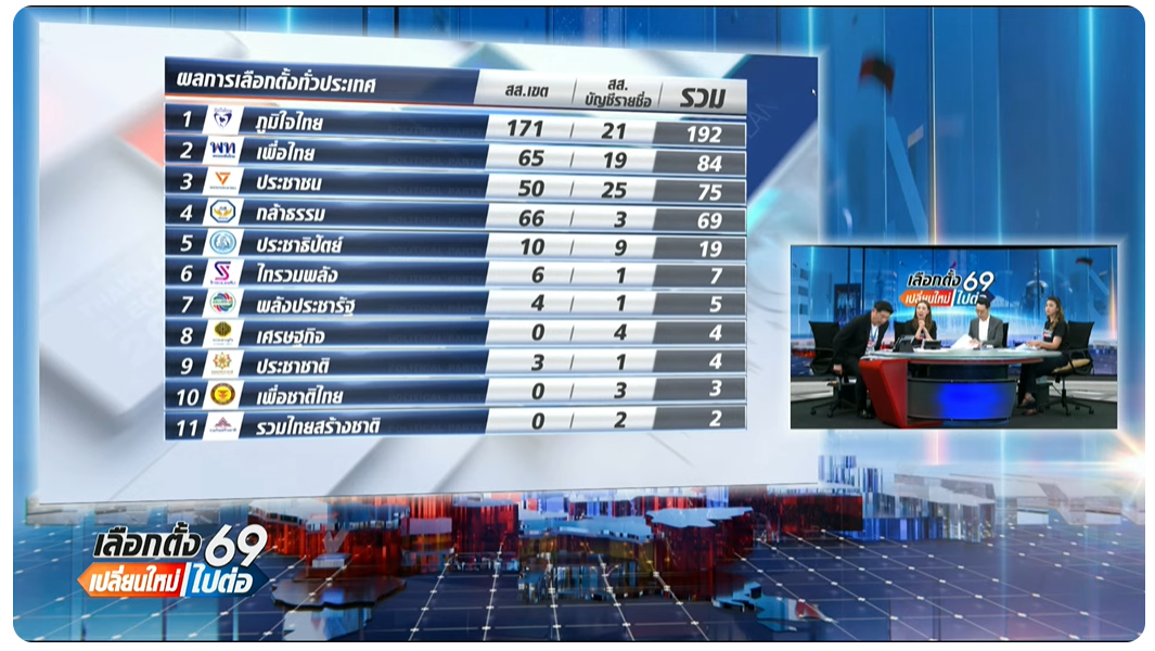 พวกพื้นที่แถว สงครามน่ะ เค้า ไม่ ภูมิใจไทย ก็ กล้าธรรม