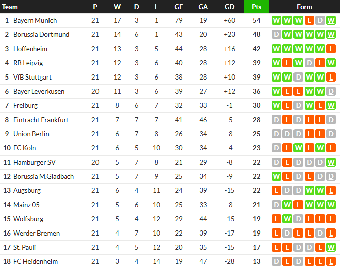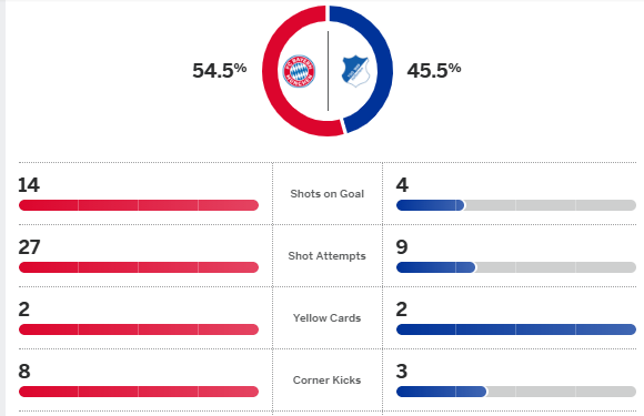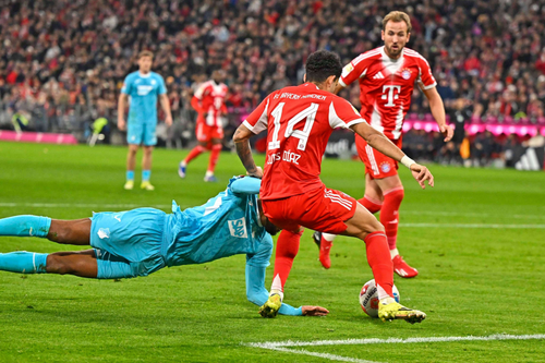 ฮอฟเฟ่นไฮม์ ทีมฟอร์มแรงโดนใบแดงเหลือสิบคนภายใน 17 นาที จากนั้น แฮร์รี่ เคน กดจุดโทษขึ้นนำ แล้วแม้โดนตีเสมอ แต่ดาวซัลโวอังกฤษ สังหารอีกจุดโทษก่อน หลุยส์ ดิอาซ รัวคนเดียว 3 ประตูเปิดบ้านถล่ม 5-1 กลับสู่เส้นทางชัยชนะ นำจ่าฝูง บุนเดสลีก้า เหนือ ดอร์ทมุนด์ 6 แต้ม