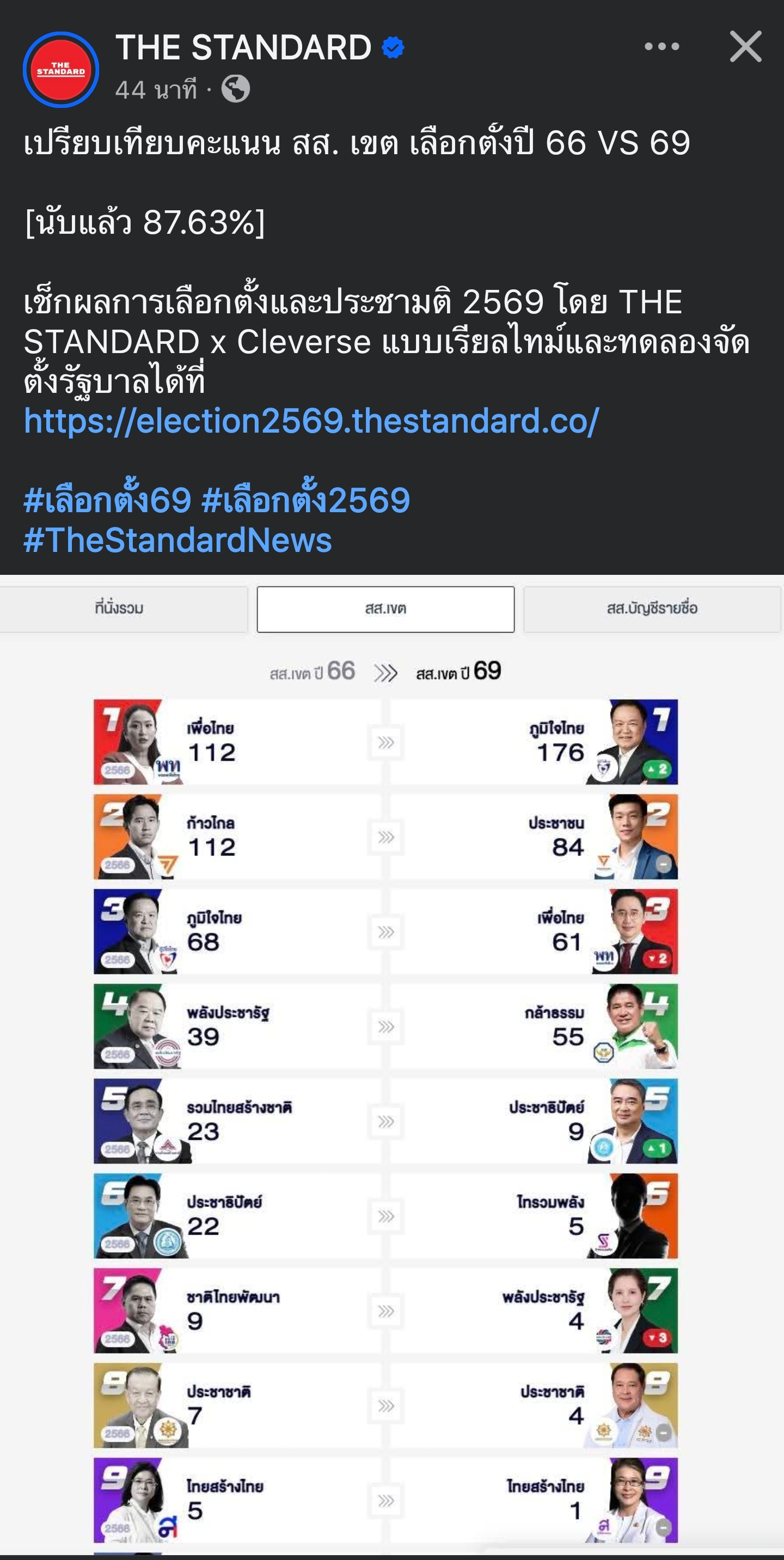 [RE: เปรียบเทียบคะแนน สส.บัญชีรายชื่อ/เขต เลือกตั้งปี 66/69]