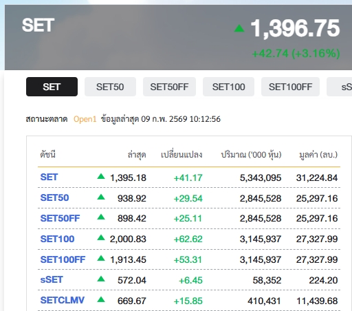 ตลาดหุ้นไทยเขียวทั้งกระดาน