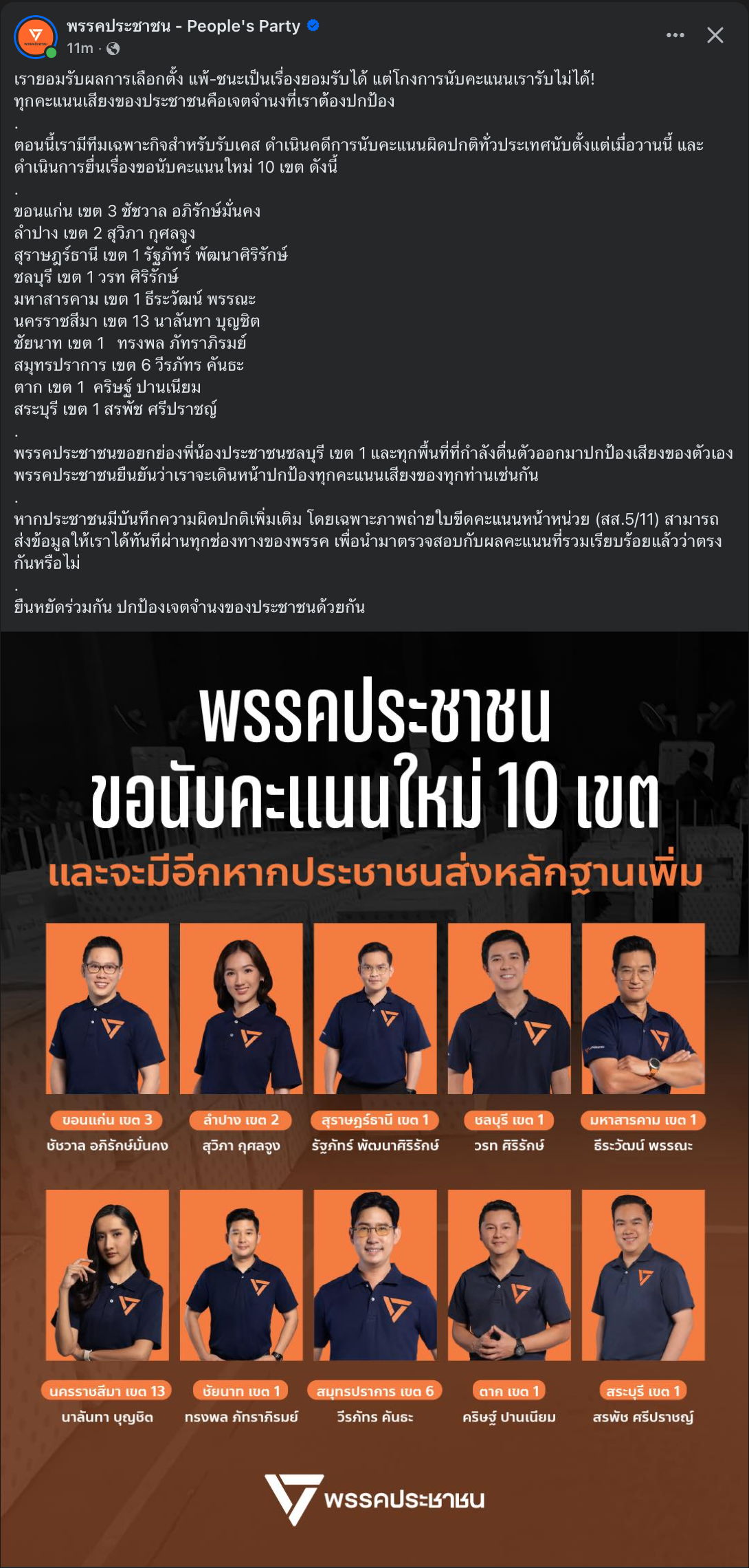 [RE: พรรคประชาชนขอนับคะแนนใหม่ 10 เขต]