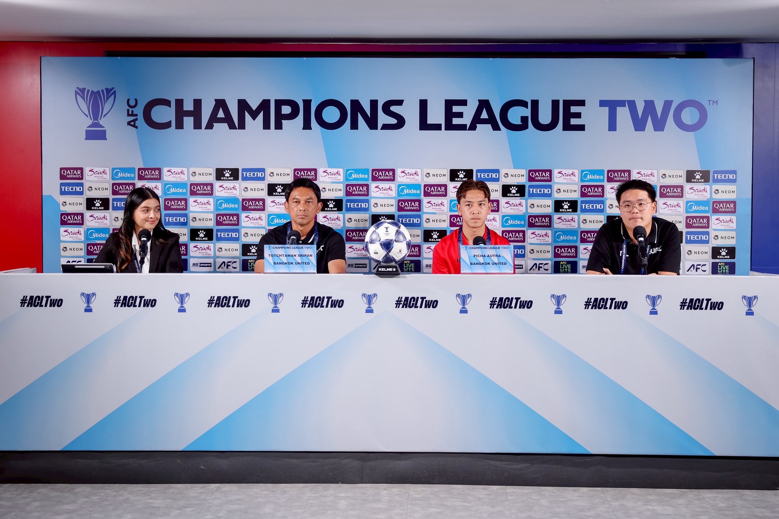 วันนี้ (11 ก.พ.) ณ ห้องแถลงข่าวสนาม ทรู บีจี สเตเดี้ยม “โค้ชแบน” ธชตวัน ศรีปาน และ พิชา อุทรา ร่วมแถลงข่าวการแข่งขัน ฟุตบอล เอเอฟซี แชมเปี้ยนส์ ลีก ทู 2025/26 รอบ 16 ทีมสุดท้าย นัดแรก ทรู แบงค็อก ยูไนเต็ด พบ แม็คคาเธอร์ เอฟซี ในวันพรุ่งนี้