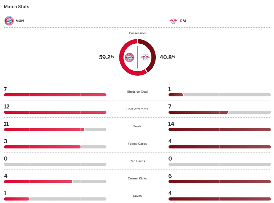จบเกม บาเยิร์น เอาชนะ ไลป์ซิก 2-0 ทำให้พวกเขาทะลุเข้าสู่รอบรองชนะเลิศของเดเอฟเบ โพคาล ต้องรอผลจับสลากว่าจะได้เจอกับทีมไหนระหว่าง เลเวอร์คูเซ่น, สตุ๊ตการ์ท และ ไฟรบวร์ก