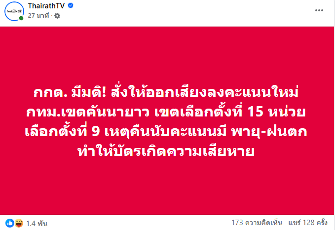 [RE: มติกกต.ออกเสียงลงคะแนนใหม่กทม.คันนายาวเขตเลือกตั้ง15หน่วย9]