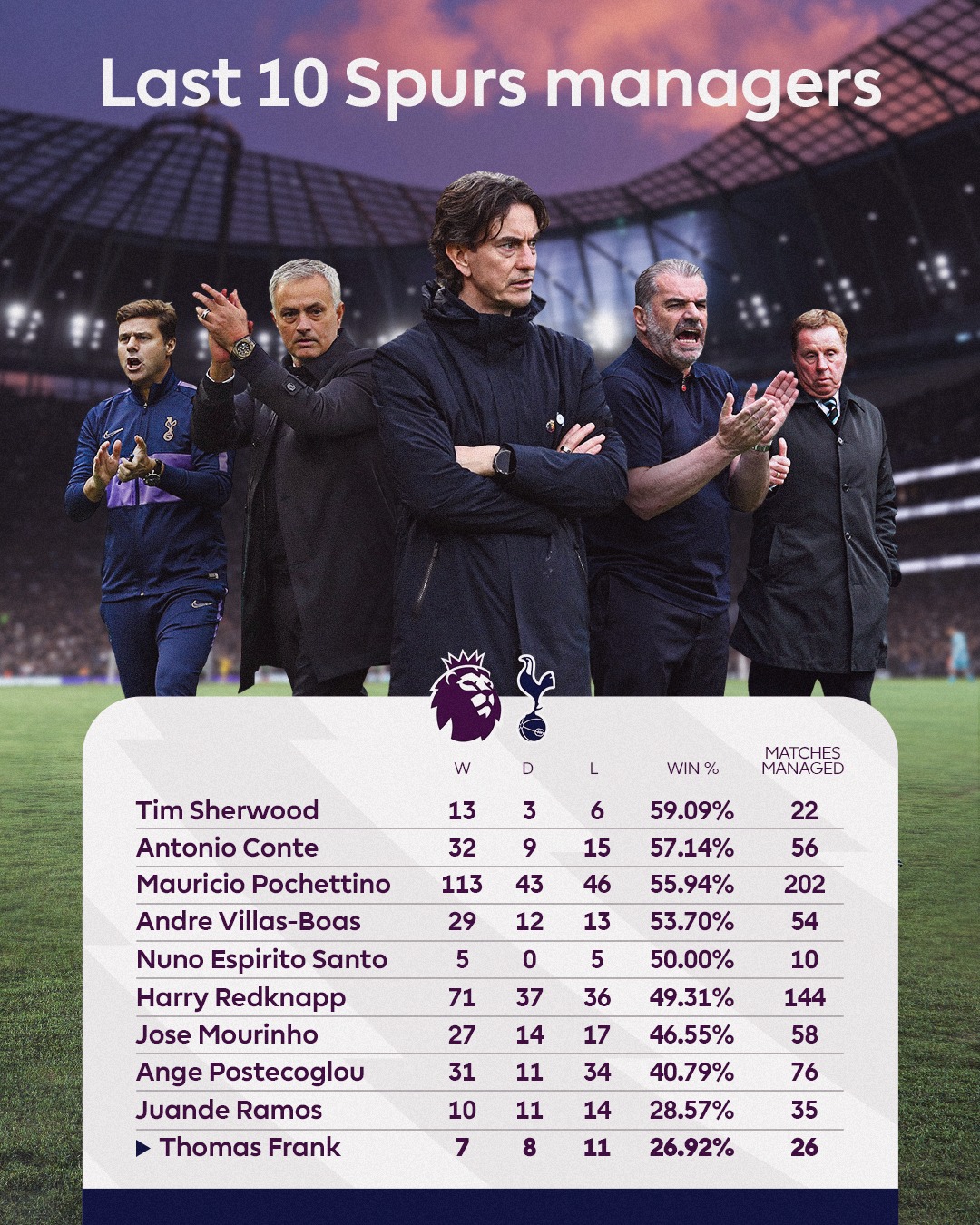 สถิติกุนซือ สเปอร์ส 10 คนหลังสุด!