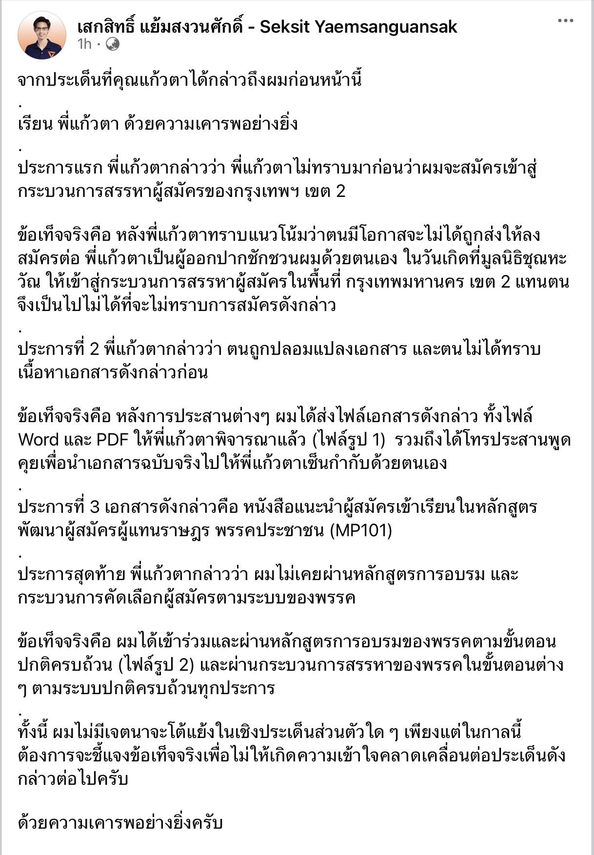 [RE]ส.ส.เสกสิทธิ์ ตอบกลับ “แก้วตา”