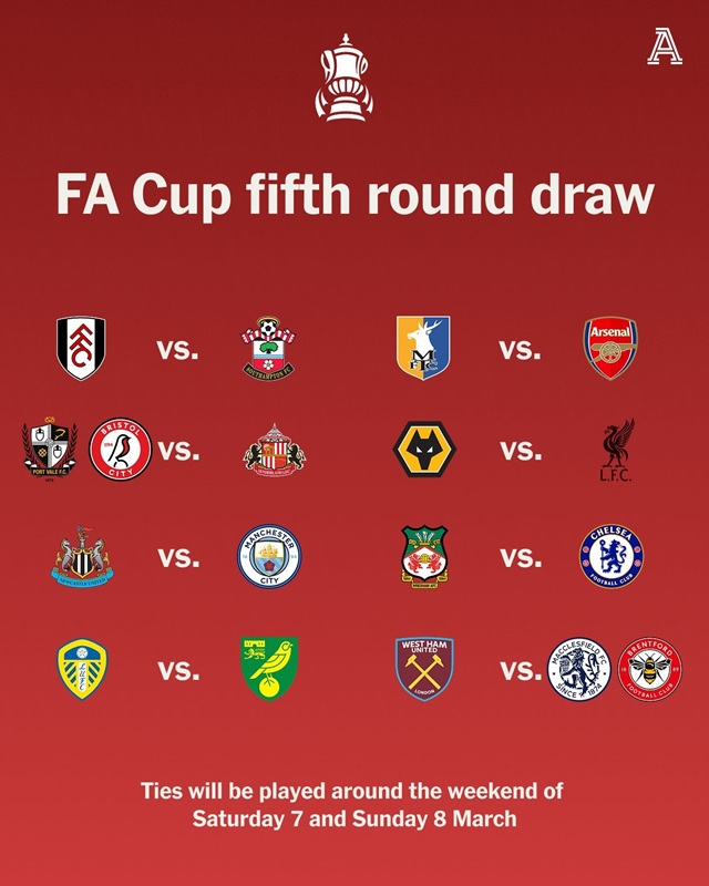 ผลการจับสลากเอฟเอ คัพ รอบ 5 มีดังนี้
