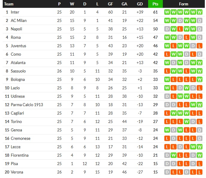 1-0 อันเดรีย ปินามอนติ น.40, 2-0 โดเมนิโก้ เบราร์ดี้ น.44, 3-0 โดเมนิโก้ เบราร์ดี้ น.62