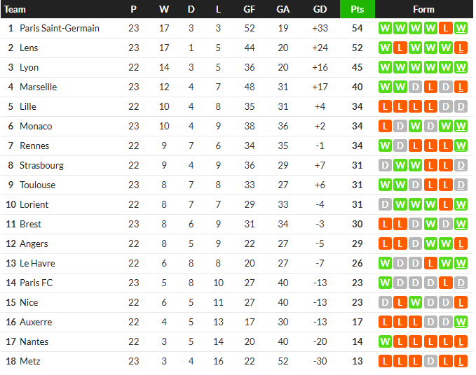 ล็องส์แพ้โมนาโก 3-2, PSG อัดเม็ตซ์ 3-0 ทวงจ่าฝูง...สรุปผลลีกเอิง