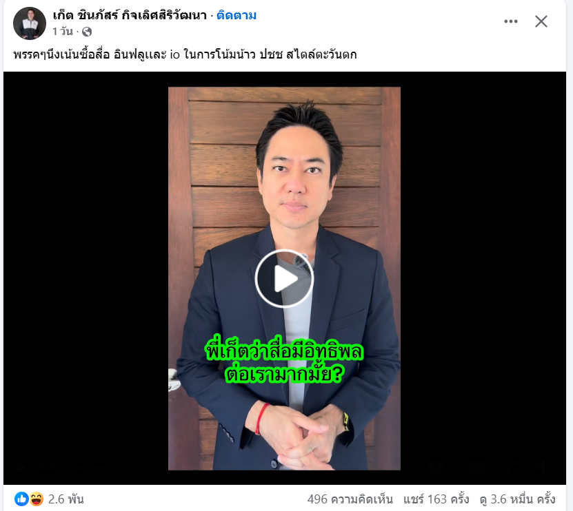 [RE: พรี่เก็ต ก็อปปี้ พิธา ซัดพรรคการเมืองหนึ่ง ซื้อสื่อ อินฟลูเเละ io ในการโน้มน้าว ปชช แบบสไตล์ตะวันตก อ่ะครับ]