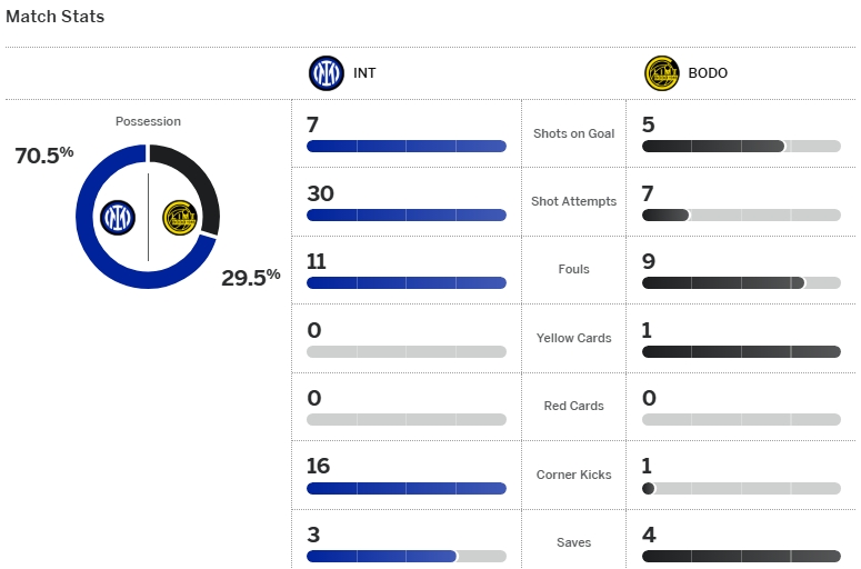 จบเกม อินเตอร์ มิลาน แพ้คาบ้านให้กับ โบโด กลิมท์ 2-1 รวมสองนัดแพ้ 5-2