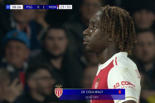 คูลิบาลี่ ทำฟาวล์ใส่ เมนเดส รับเหลืองแรก แล้วไม่ถึง 5 นาทีเข้าพรวดใส่ ฮาคิมี่ แถวกลางสนามโดนใบที่สองไล่ออก