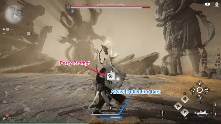 Priority 1 : Deflect หรือ Parry เกมส์จะเหมาะกับผู้เล่นสายนี้มากๆ ผู้ที่เคยผ่านเกมส์ Sekiro มาแล้วนั้น สามารถเล่นเกมส์นี้อย่างสบายไม่ยากเย็น ส่วนบอสตัวไหนถ้าไม่ไหว หน้าบ่อมีผู้เล่นมากมายคอยยื่นมือช่วยเสมอครับ แค่เพียงกดถูกใจให้เขาเหล่านั้น ถือว่าเป็นการแลกเปลี่ยนที่คุ้มยิ่งกว่าคุ้มเสียอีก จากรูปด้านล่างจะเห็นว่าหาก Parry สำเร็จ หลอดสีฟ้าของบอสหรือศัตรูในเกมส์จะลดลง หากลดจนหมดหลอดเราสามารถใช้ท่า Finishing เพื่อทำดาเมจมหาศาลได้ครับ (จากรูปจะเป็นการเล่นในโหมด stoty หากใครอยากท้าทายให้ไปโหมด Legendary ได้เลยครับ จะไม่มี Quick Time Event แบบนี้)