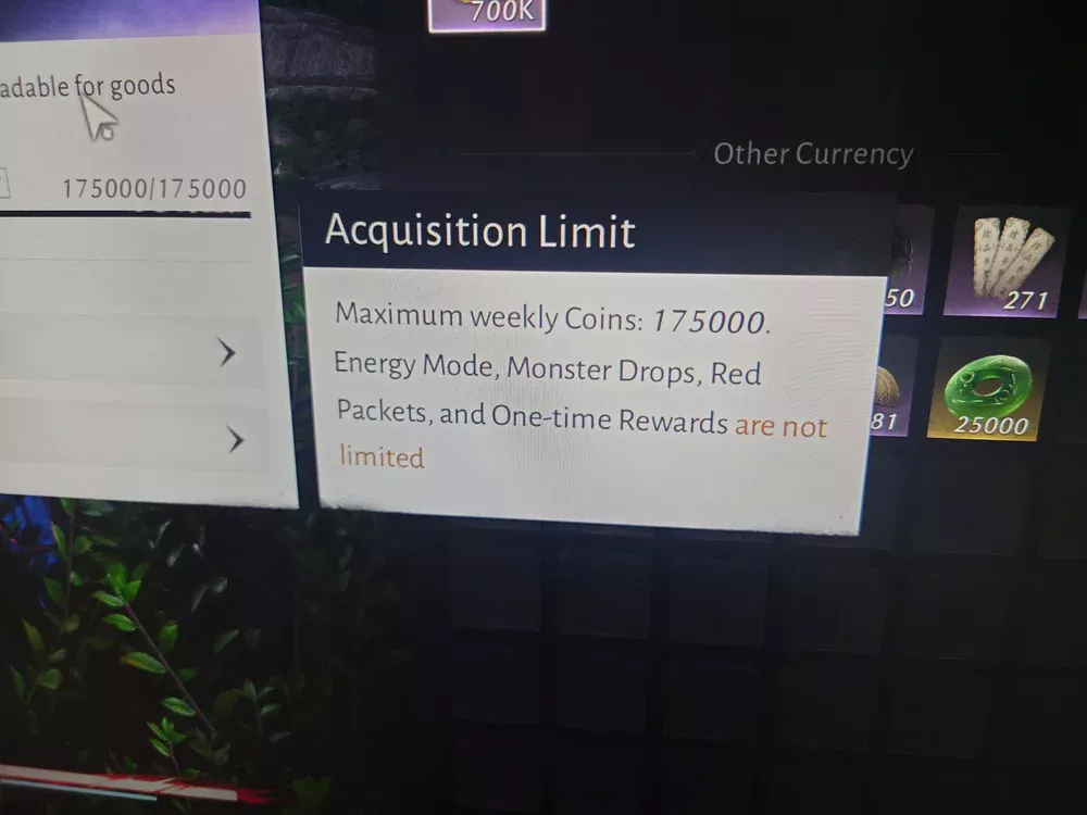 3.ค่าเงินในเกมส์ เงินสำคัญๆจะถูก Cap ไว้เมื่อถึงค่านึงครับในสัปดาห์นั้น Jade fish 23,000 ส่วน Coin 175,000 coin ,ค่า Coin มีเพียง ลงดันที่ใช้ Energy, ภารกิจที่ให้รางวัลครั้งเดียว และดรอปจากมอนสเตอร์ จะไม่ถูกเอามารวมด้วยครับ ตรงนี้จะเป็นปัญหาหนักเนื่องจาก การอัพเกรด Martial Art level สูงๆ ต้องใช้เงินมหาศาล เช่นเดียวกับระบบ Enhance gear (เพิ่ม Passive ให้ช่องอุปกรณ์นั้นๆ ไม่ว่าคุณจะใส่ของเลเวลไหน : ถาวร) ที่ใช้เงินมากพอๆกันครับ ใช้จ่ายอะไรเลยต้องประหยัดกันไว้นิดนึง