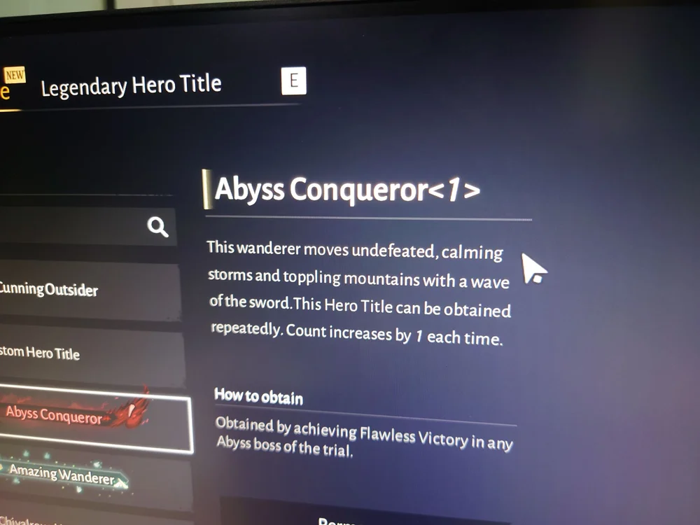 เมื่อได้รับฉายามาจากเควส หรือ ภารกิจใดๆ สามารถนำมาโชว์ได้ โดยไปคลิ๊กตั้งค่าตรงรูป Avartar เราครับ ซึ่งอันนี้จะโชว์ในโหมด Multiplayer ด้วย ใครเจ๋งๆมีฉายาเท่ห์ๆ เอามาโชว์ได้เลยครับ อันที่โหดๆผมว่าอันที่เป็น Abyss Conqueror นี่แหละครับ ได้มาจากการเข้าโหมด 1-1 trail กับบอส แล้วไม่โดนดาเมจเลย ซึ่งท้าทายมากๆ ใครมีเจ้าเลขนี้ stack ขึ้นสูงๆเนี่ย นับเป็นผู้เชียวชาญการ Parry ได้เลยครับ และได้รับความนับถือพอสมควร เห็นเยอะๆสุดนี้ 30 ขึ้นก็มีนะ