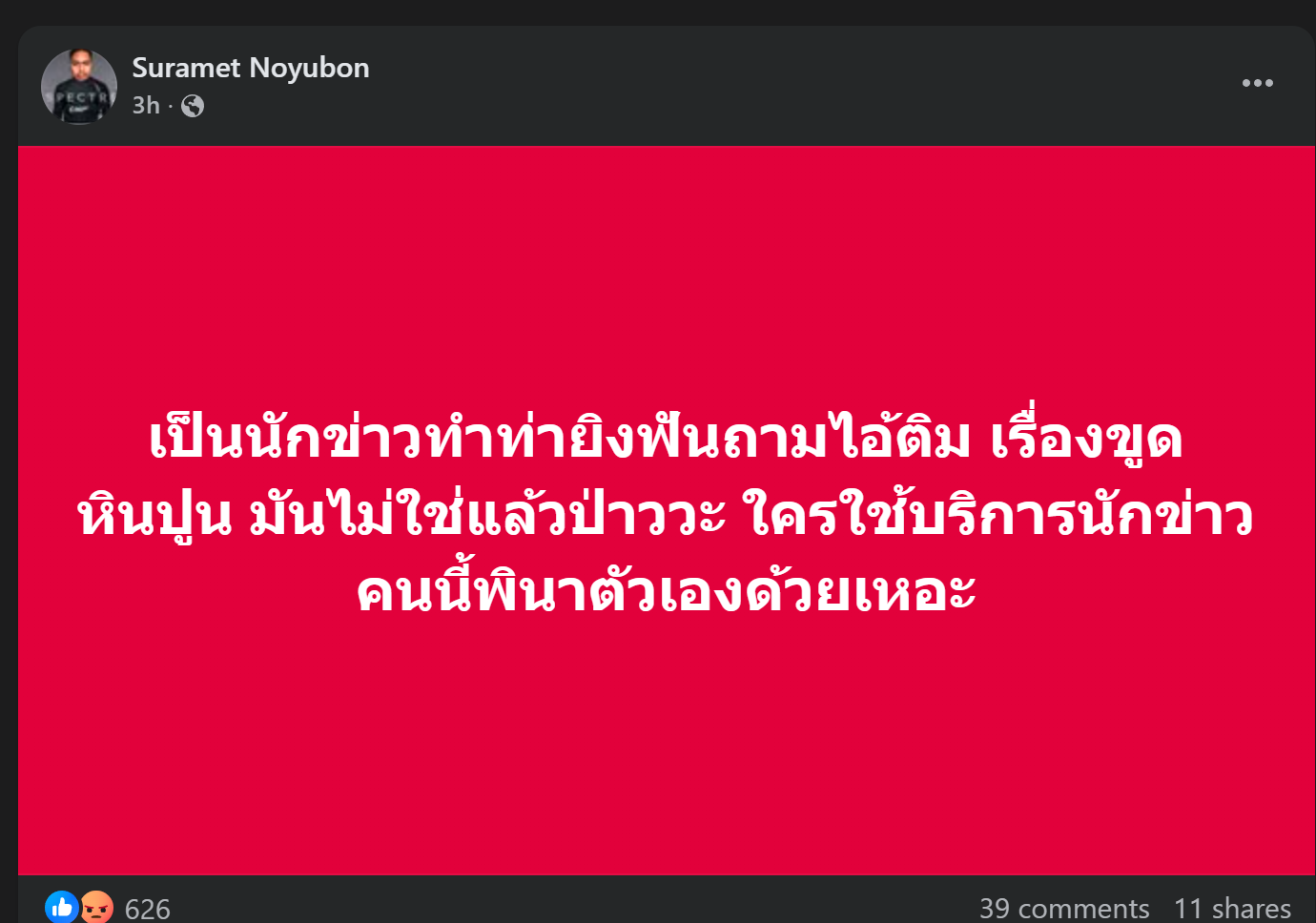 นักข่าวอาชีพทุกคนมันมีเทคนิคยิงช็อตเผื่อเป้าหมายสลิ้งแตกอยู่ทุกคนนั้นแหละ รับมือให้ดี พวกห่านี้หากินด้วยกระแส