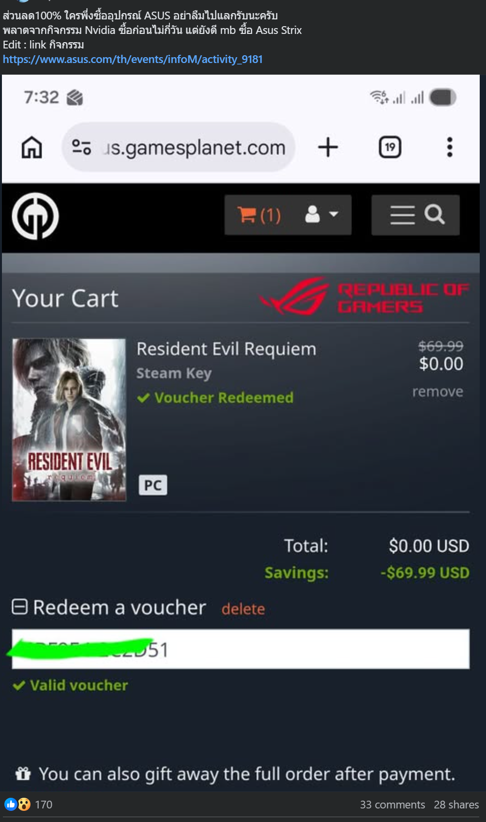 ใครซื้อของยี่ห้อ ASUS ได้เกม Re Requiem ฟรี (บางรายการเท่านั้น)