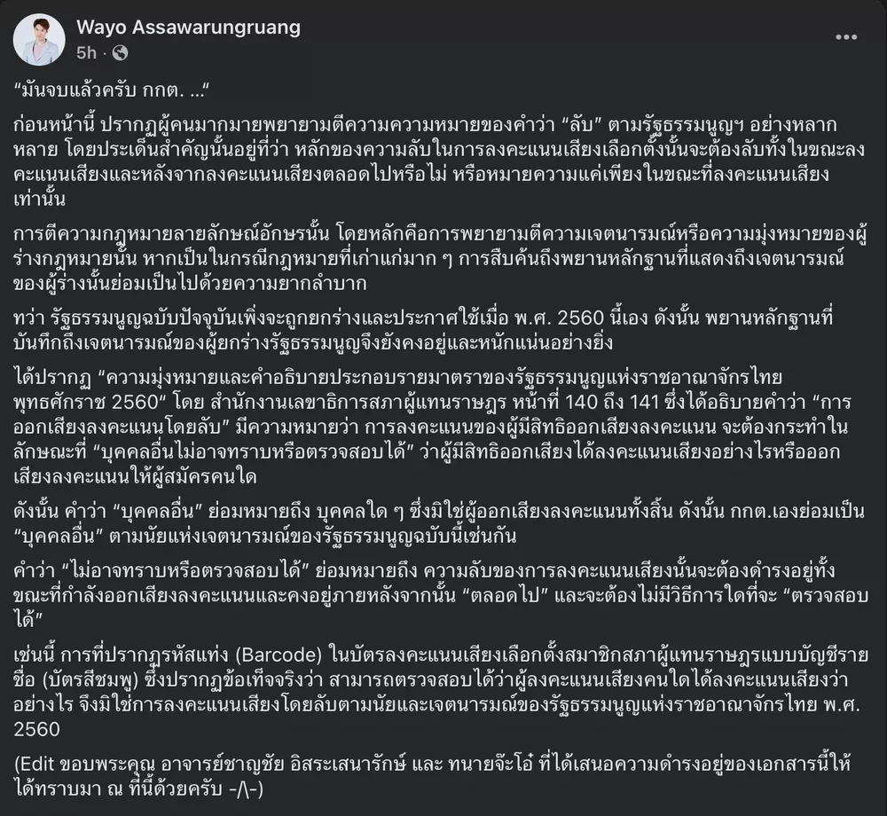 [RE: รองหัวหน้าพรรคประชาชน หมอวาโย - เจาะคดี “เลือกตั้ง” “ไม่ลับ”]