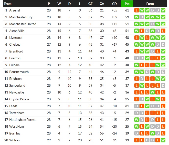 ปิศาจแดง แมนเชสเตอร์ ยูไนเต็ด ในมือ ปลัด ไมเคิล คาร์ริค ยังสร้างผลงานน่าประทับใจอย่างต่อเนื่อง เมื่อล่าสุดเปิดบ้านแซงชนะ คริสตัล พาเลซ 2-1 ในเกมที่พวกเขาโดนยิงนำก่อนตั้งแต่ต้นเกม (น.4) แต่ครึ่งหลังมีจุดเปลี่ยน มักแซ็ง ลาครัวซ์ กองหลังทีมเยือนถูกใบแดงไล่ออกและทำทีมเสียจุดโทษ (น.52) บรูโน่ แฟร์นานเดส สังหารไม่พลาด ก่อน เบนจามิน เชชโก้ ที่ฟอร์มกำลังร้อนแรงมาโขกประตูชัย (น.65) ให้ทีมเก็บ 3 คะแนนแซงแอสตัน วิลล่า ขึ้นไปอยู่อันดับ 3 ได้สำเร็จ