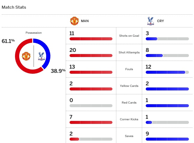 เกมยังคู่คี่ ยูไนเต็ดไม่ได้เหนือกว่าถึงขนาดสร้างความกดดันให้เกมรับของพาเลซ