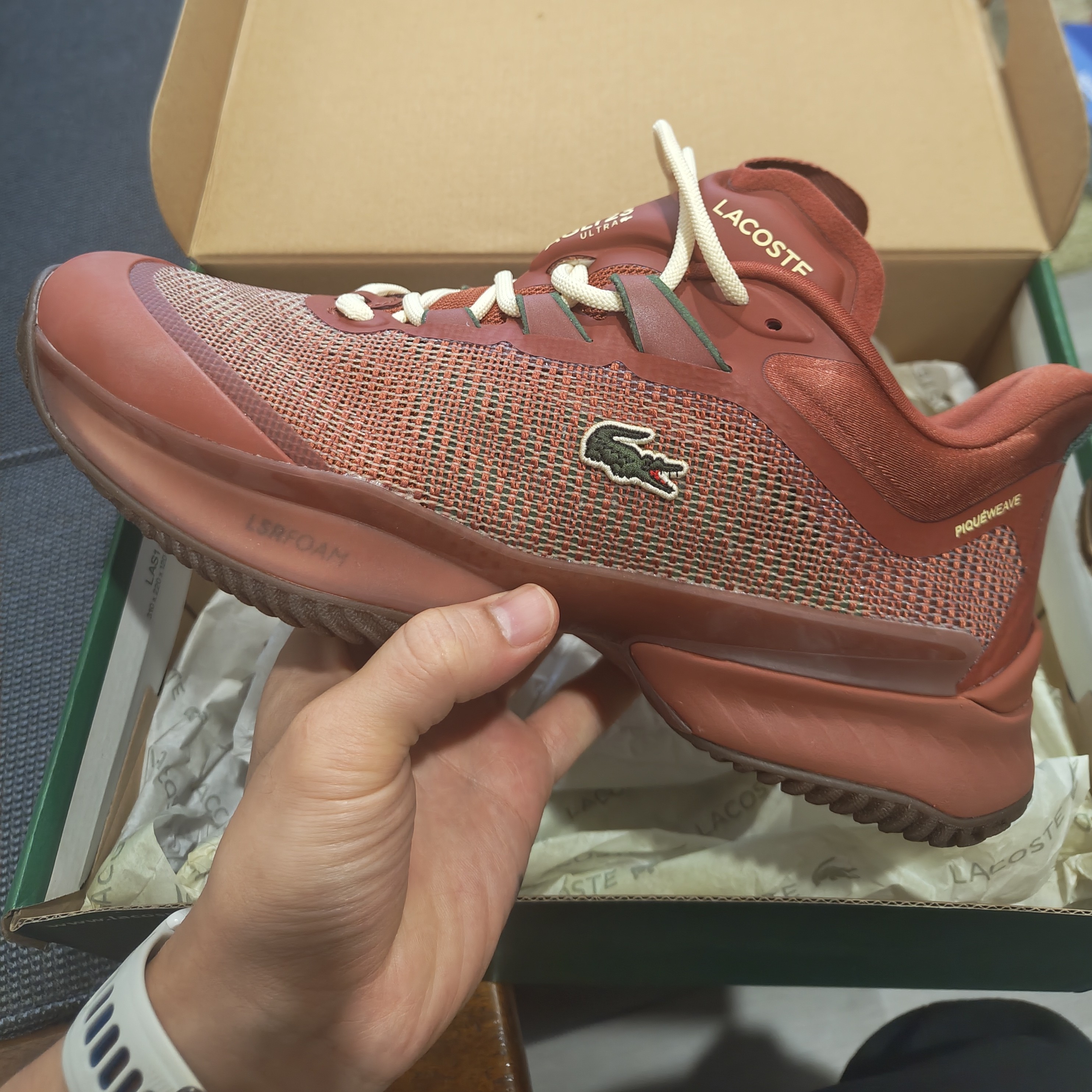 รองเท้าเทนนิสลาคอสท์ สภาพใหม่กริ๊ป กล่องครบ (ลองใส่ตีเล่นครั้งเดียวครับ)