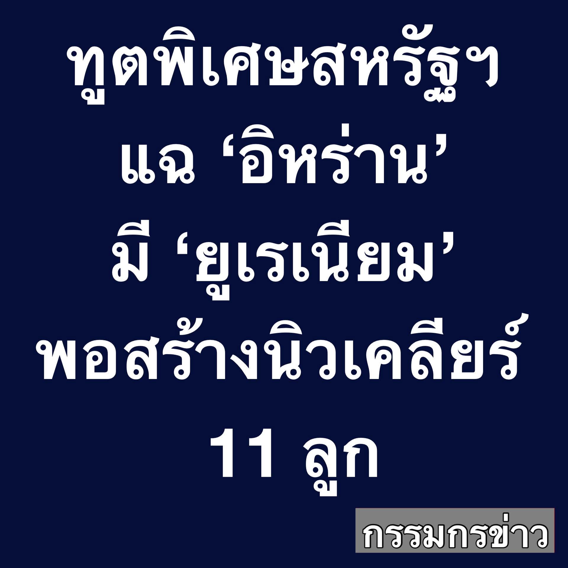 ฑูตUSAแฉอิหร่านมียูเรเนียมทำนิวเคลียได้11ลูก