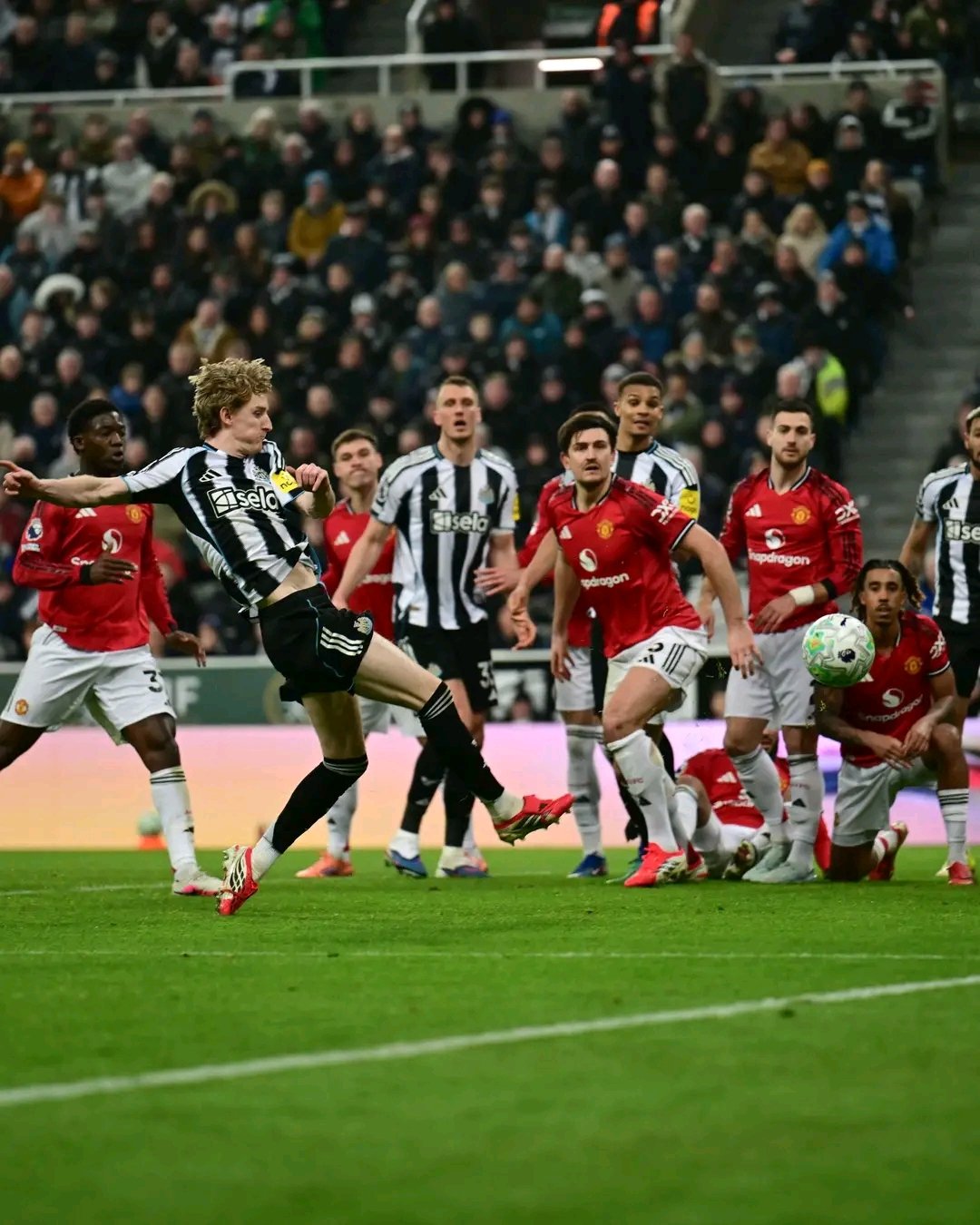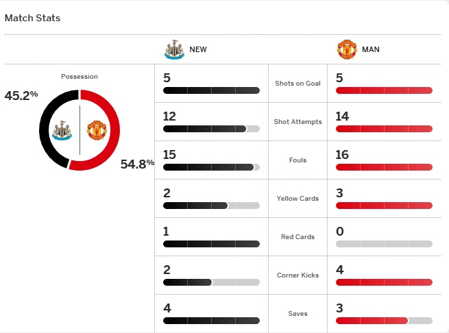 สตาร์ตเกม นิวคาสเซิล ทำได้ดีกว่ายูไนเต็ด และเกือบได้จากจังหวะที่ ทริปเปียร์ เปิดบอลโด่งไปเสาไกล ลูกมันตกมาชนเสา ก่อนจบเพลย์นี้ด้วยฮอลล์ซัดสวนข้ามคาน
