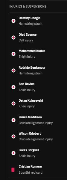 อย่างแฟน สเปอร์ส ท่านนึงว่าละ ตกชั้นไม่เกินจริง ท่านดูตัวเจ็บของทีมสิ