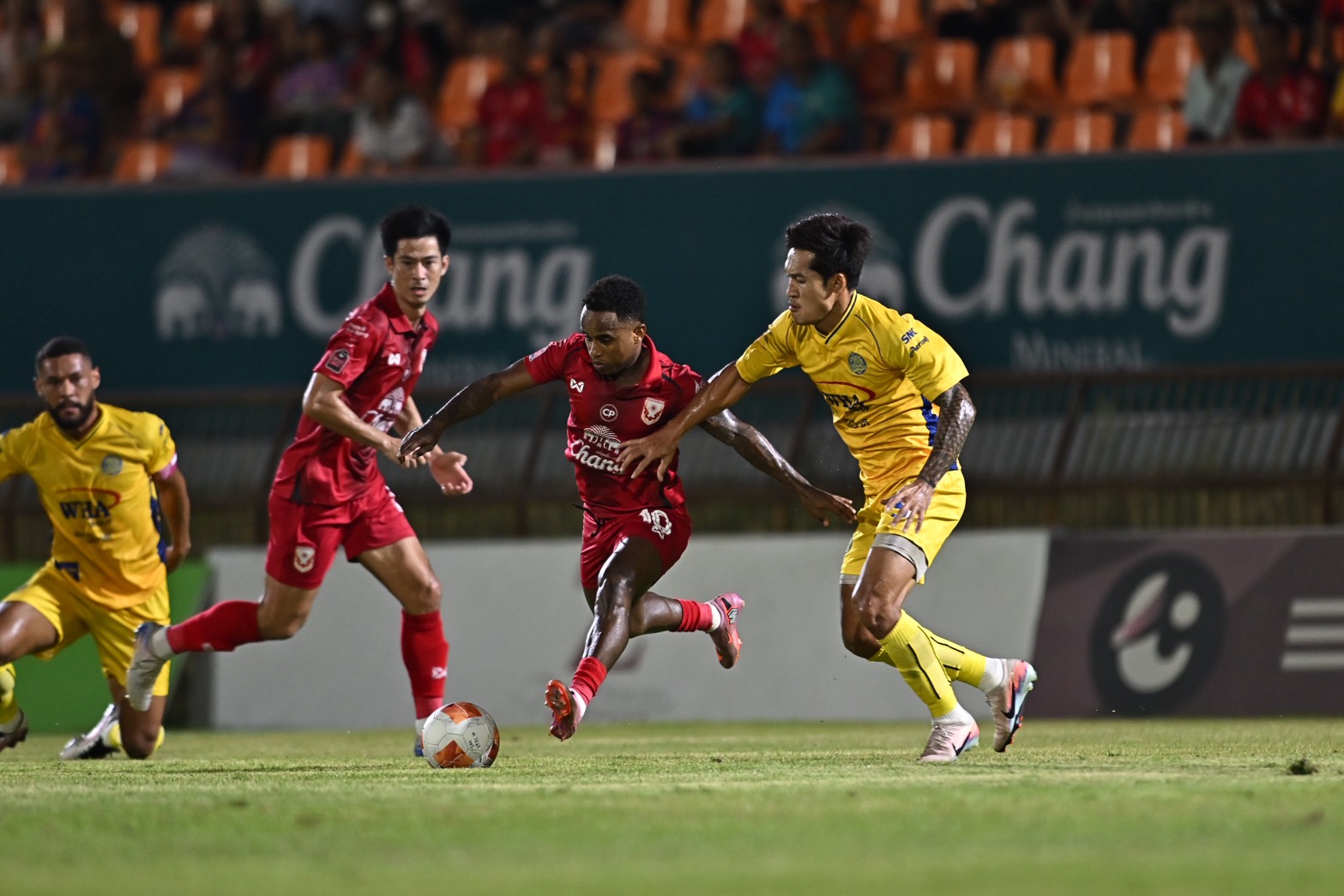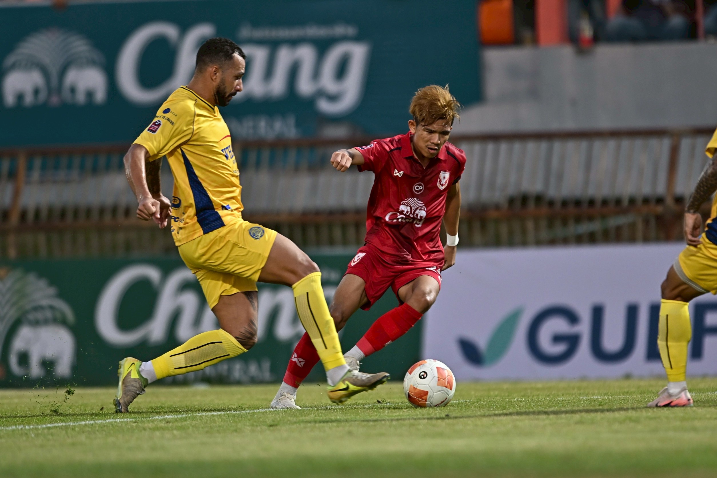 เริ่มเกมมานาทีที่ 10 โอกาสลุ้นของเจ้าบ้านเมื่อ ทัศนพงษ์ หมวดดารักษ์ ได้บอลจากตรงกลางหน้าเขตโทษ แล้วตักทะลุช่องทางซ้ายให้กับ ชัยพล อดทน ได้หลุดอข้าไปยิงแต่บอลหลุดออกหลังไป