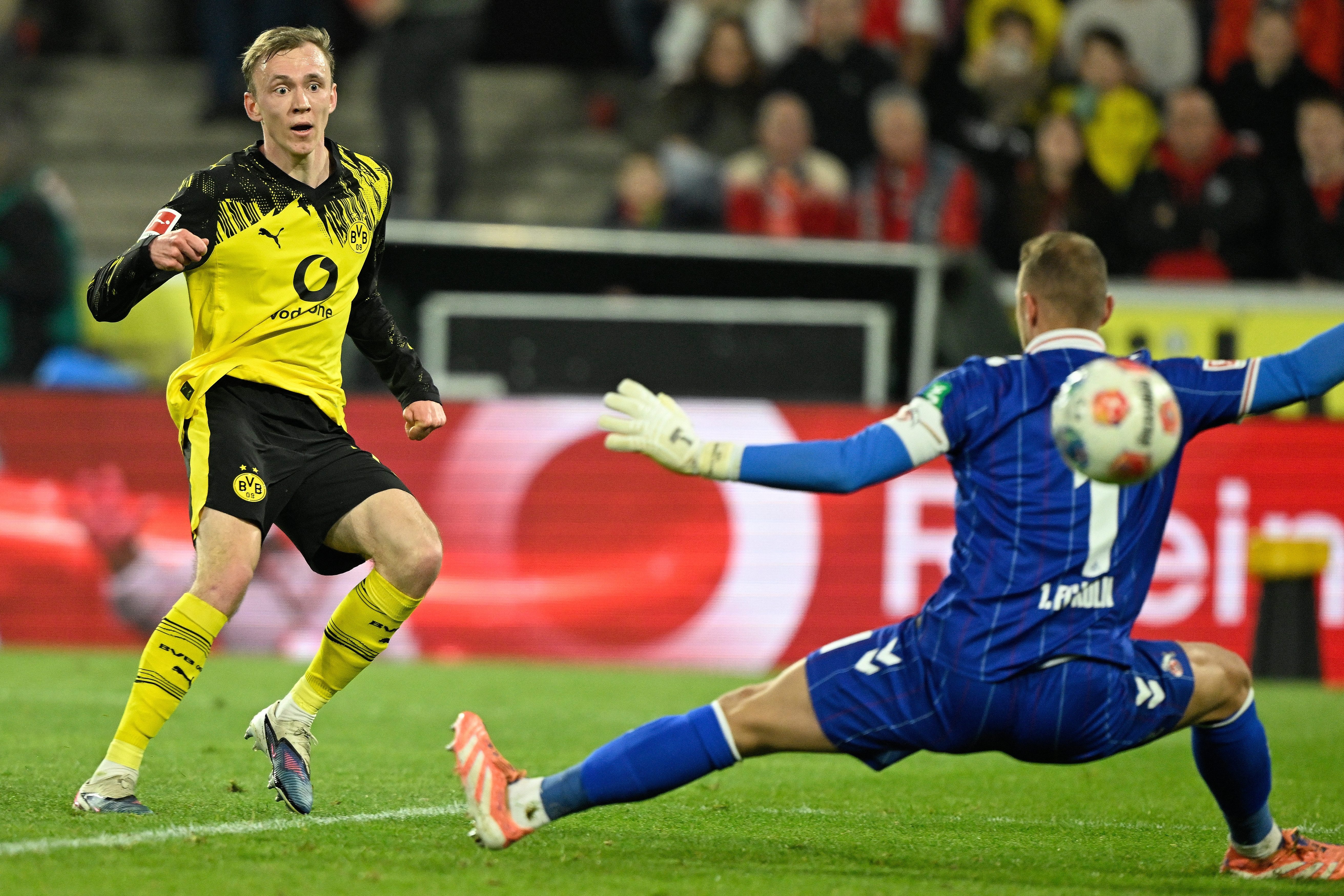 แต่พอ ดอร์ทมุนด์ หาโอกาสเพิ่มก็เป็นฝ่ายที่ได้ประตูทิ้งห่างออกไป จากการถ่ายบอลไปทางซ้ายให้ ไบเออร์ ก่อนทำชิ่งกับ บรันท์ สอดเข้าเขตโทษมุมแคบตามด้วยการยิงเข้าเสาไกล ดอร์ทมุนด์ นำ 2-0
