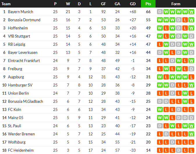 โบรุสเซีย ดอร์ทมุนด์ กลับมาคว้าชัยชนะหลังจาก มักซิมิเลียน ไบเออร์ โหม่งให้ เซห์รู กีราสซี่ ยิงพาทีมออกนำแถม โคโลญจน์ เหลือ 10 คนทำให้เกมยิ่งง่ายขึ้นก่อนที่ ไบเออร์ จะมาบวกเพิ่มในครึ่งหลัง เสือเหลือง ซิวชัย 2-1 แต่ยังตามหลังจ่าฝูงไกลถึง 11 แต้ม
