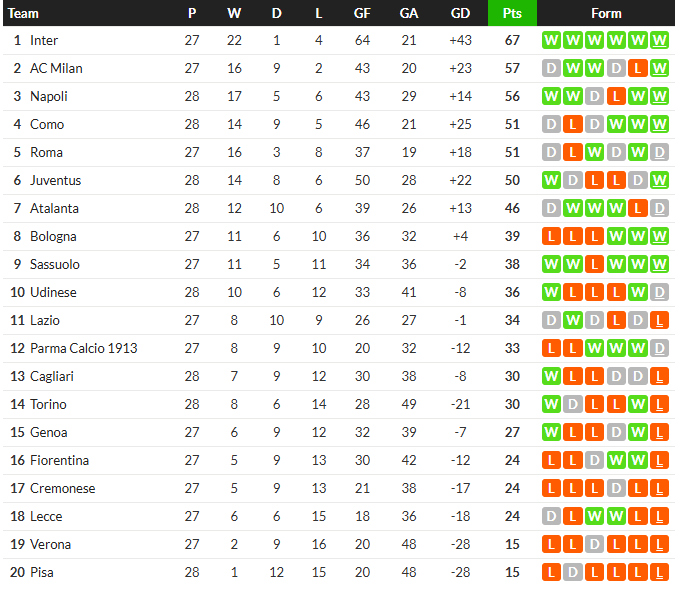 ฝั่ง ปิซ่า แพ้มา 3 เกมติดยังใช้ทีมเดิมนำโดย คอปโปล่า, อาบิสเชอร์, ดูโรซินมี่