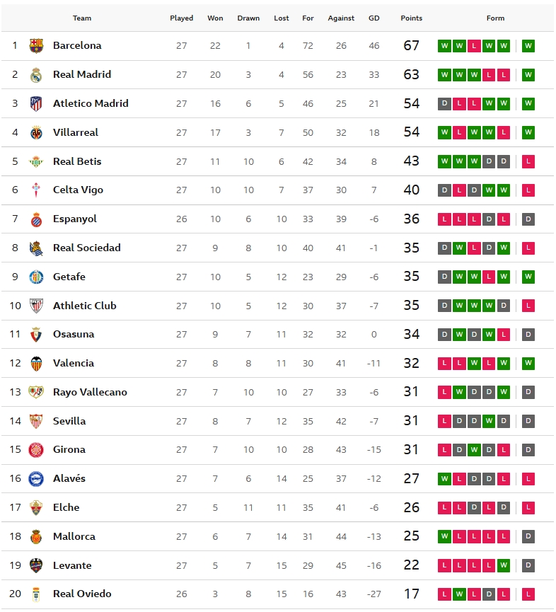 สรุปผล ลาลีกา