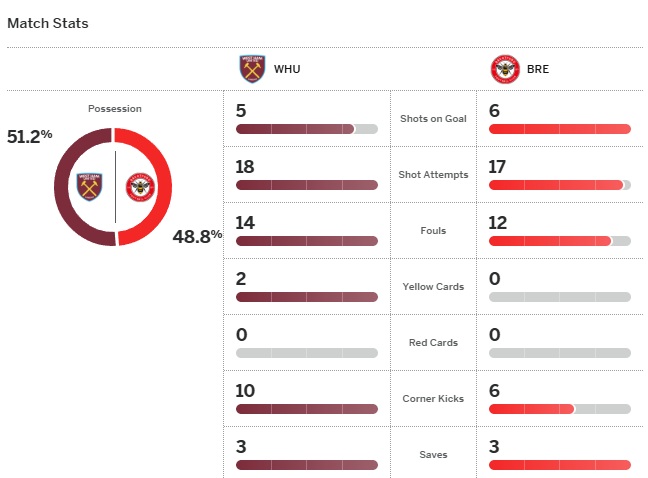 เกมคครึงแรก เบรนท์ฟอร์ด ดูจะได้บอลบุกมากว่านิดๆ แต่ภาพรวมไม่มีฝ่ายไหนได้ลุ้นทำประตูเพิ่มเลย