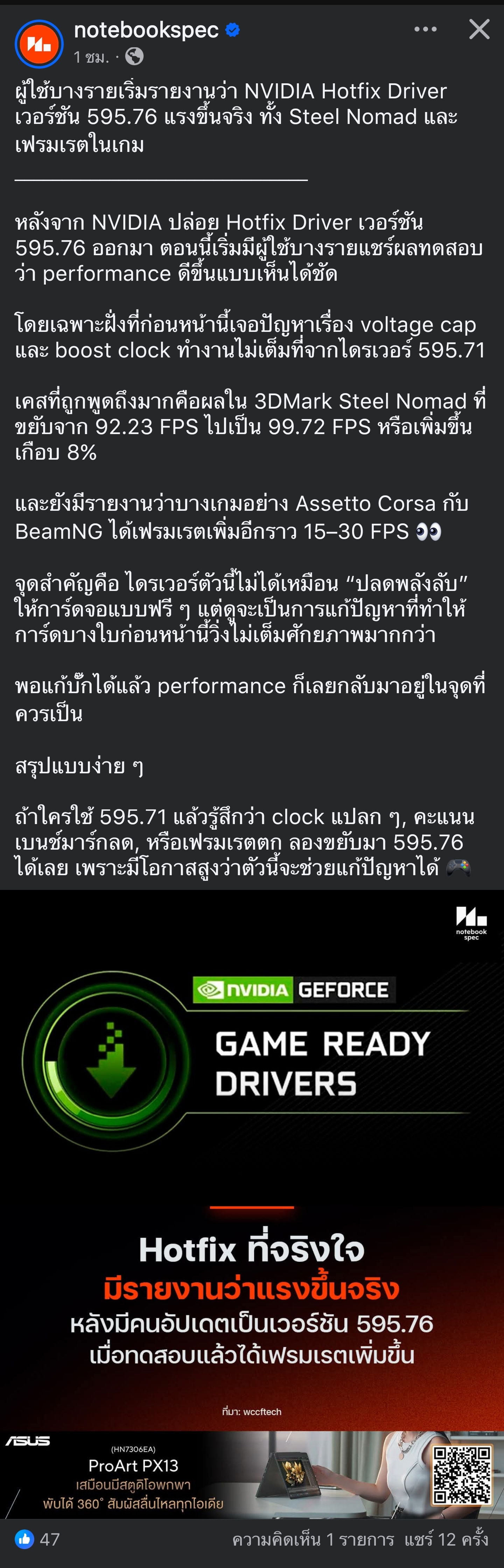 [RE: Hotfix Driver ที่จริงใจ มีรายงานว่าไดรเวอร์ 595.76 ได้เฟรมเรตเพิ่มขึ้น]