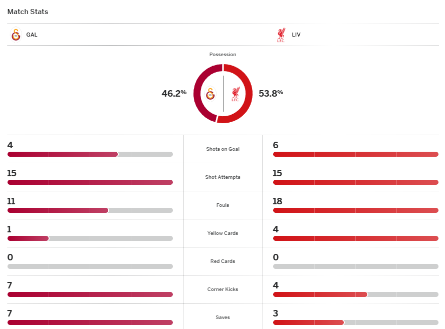 จบเกม ลิเวอร์พูล พ่ายให้กับ กาลาตาซาราย 1-0 ทำให้พวกเขาแพ้ต่อ กาลาตาซาราย 3 เกมติดต่อกันและนัดสองกลับไปเล่นในบ้านต้องแก้ตัวให้ได้