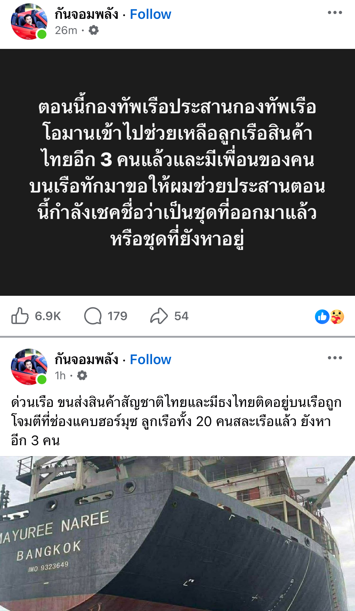 เพื่อน-ญาติของลูกเรือ ติดต่อขอความช่วยเหลือไปที่พรี่Gunแล้ว