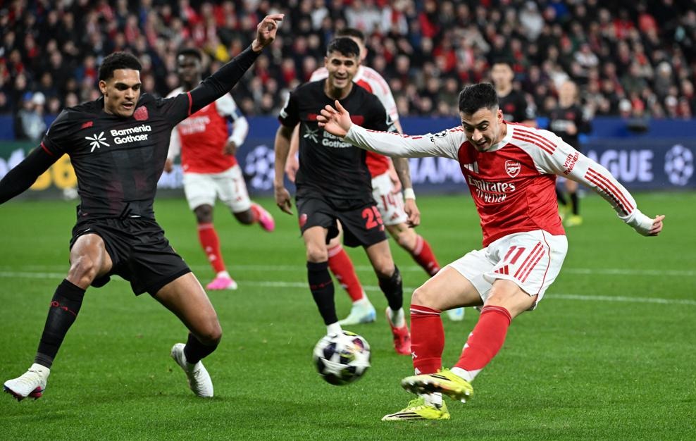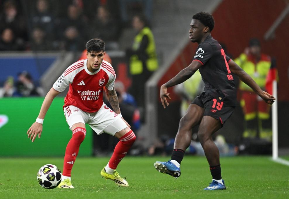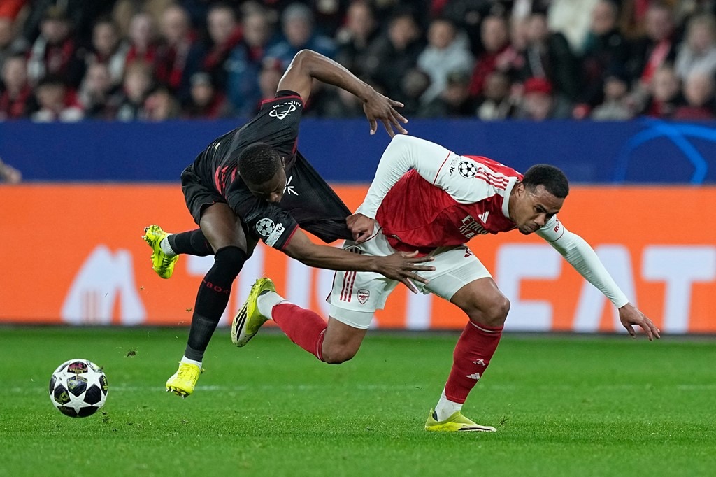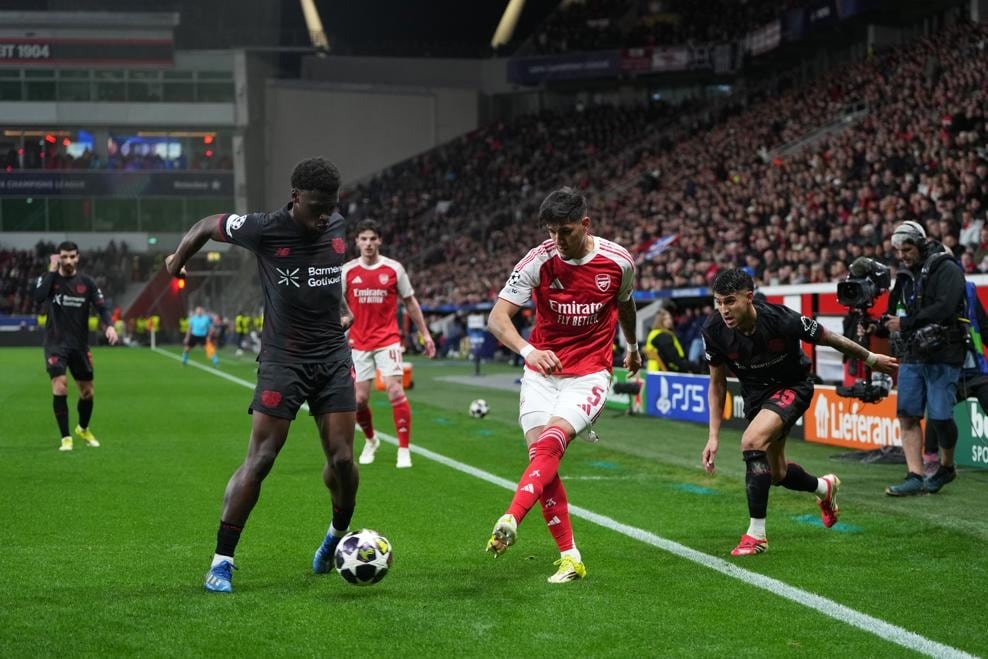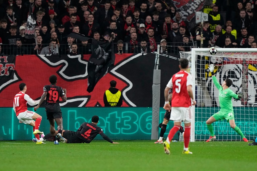อาร์เซน่อล เกือบไปแบบสุดๆเพราะเกมรุกของพวกเขาทำอะไรแทบไม่ได้นอกจาก กาเบรียล มาร์ติเนลลี่ ยิงชนคานก่อนที่ ไบเออร์ เลเวอร์คูเซ่น จะมาใช้เตะมุมเอาประตูออกนำ แต่สุดท้าย ปืนใหญ่ ยังรอดตัวได้จุดโทษนาที 89 ไค ฮาแวร์ตซ์ ยิงพาไล่เจ๊า 1-1 กลับไปเล่นนัดสองในบ้านโดยที่ไม่แพ้