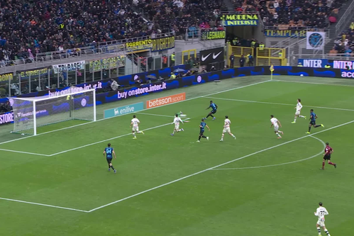 ดุมฟรีส์ บังบอลในเขตโทษตัวเองเจอ ซูเลมาน่า เบียดล้มแล้วฉกยิงติดเซฟ ซอมเมอร์ ไปเข้าทาง เคิร์สโตวิช ซ้ำจ่อ อินเตอร์ ปิดกล่องไม่ได้โดนตีเสมอ 1-1