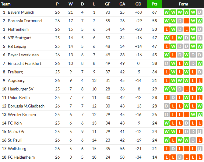จบเกม ดอร์ทมุนด์ เอาชนะ เอาส์บวร์ก ไปได้ 2-0 ผนวกกับที่ บาเยิร์น สะดุดแพ้ทำให้พวกเขาลดช่องว่างลงเหลือ 9 คะแนนโดยเหลือเกมให้ลงสนามอีก 8 นัด